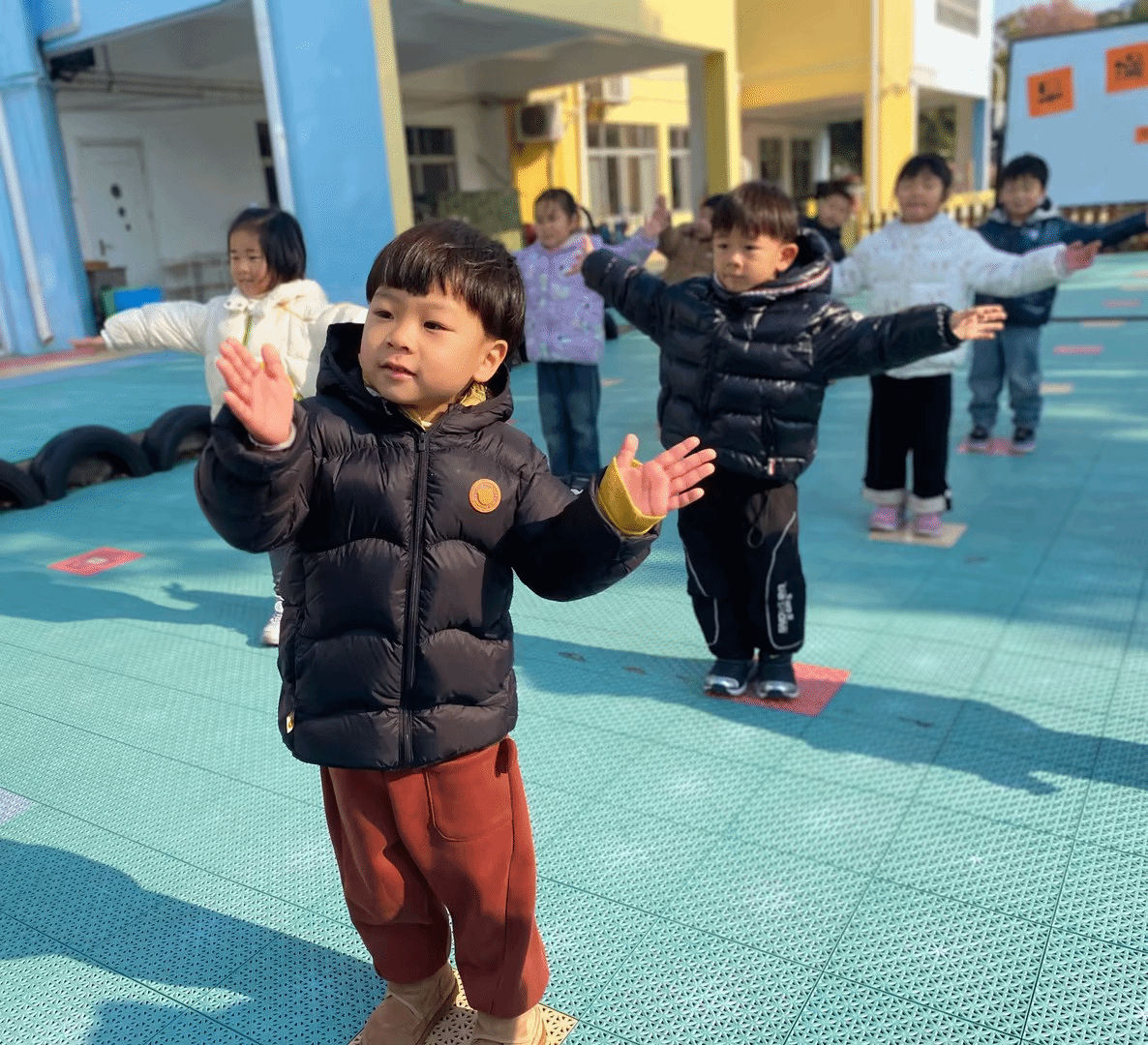 幼儿跟着音乐跳跃、转身、互动,用灵动的动作展现活力,用灿烂的笑容传递快乐。让我们一起为幼儿们加油,见证他们在趣味早操中锻炼身体、收获自信,感受童年活力四射的力量。