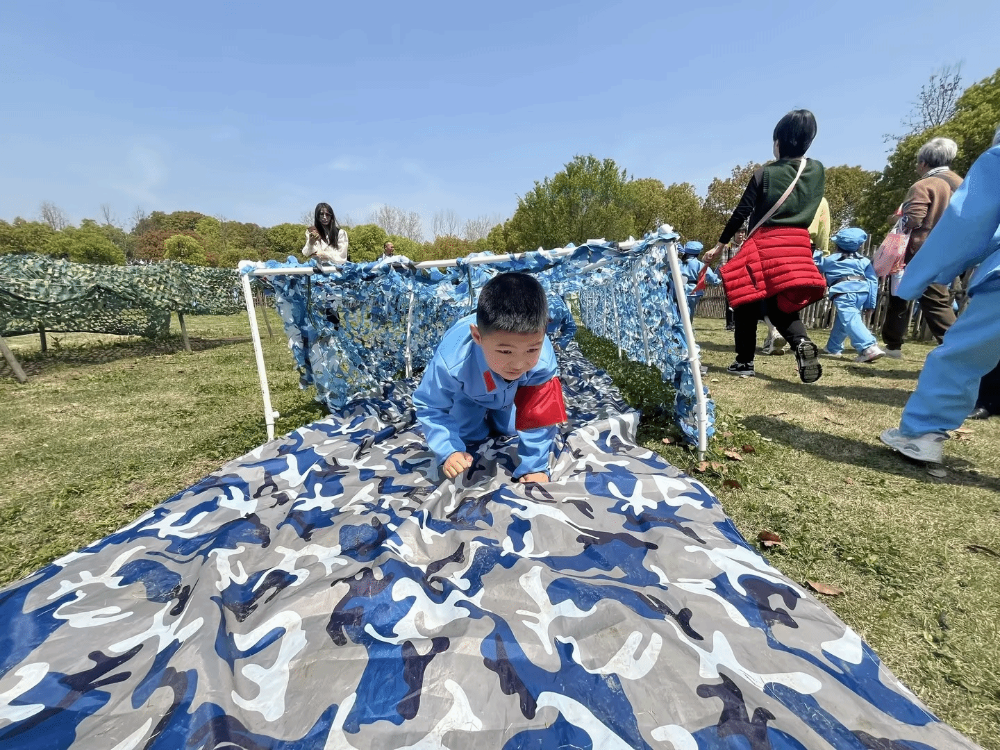 孩子是祖国的未来,在纪念抗日战争胜利79周年的日子里,我们要擎起老一辈革命家点燃的革命火炬,重温历史,发扬革命精神,迎接新的挑战。4月9号上午9时,孩子们整装待发赴沙家浜,45分钟后抵达国防教育基地,在咿姐姐的带领下入园,开展新兵训练:穿越火线、飞夺泸定桥、打靶训练、DIY手工制作手一份当时小英雄、观看《芦荡烽火》实景剧让幼儿如同亲临战场。
