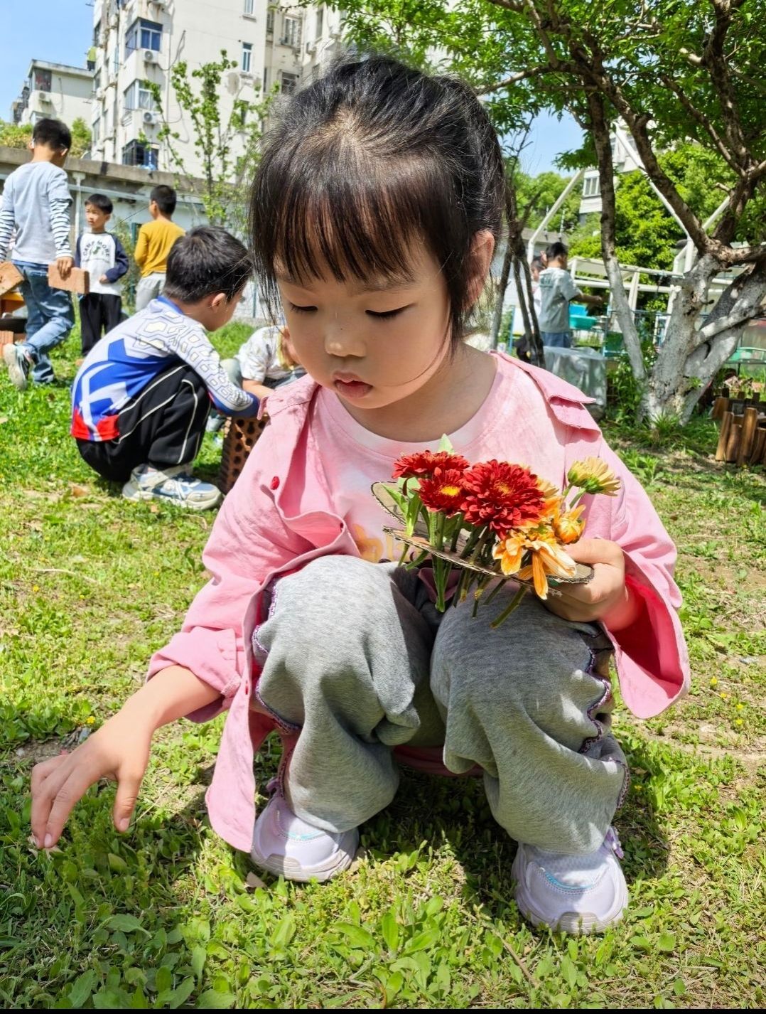 姑苏区教体文旅委下属三元新村第二幼儿园中班的孩子们,在寻找春天的过程中,对于春天的花草非常感兴趣,他们利用收集来的各种纸板制作成形状各异的花瓶,用彩笔、彩纸等涂涂、画画、贴贴进行装饰。孩子们提议我们可以去草地上采集自己喜欢的花草“插”入装饰好的花瓶中。看!草地上的孩子们就像快乐的小鸟,运用自己的感官,看看、摸摸、闻闻、听听......,与春天互动。他们将喜欢的小草、小花仔仔细细地“插”进花瓶里。“老师:快看!我的花瓶已经插满小花花了,黄的、紫的、粉色的,我好喜欢呀!你闻一闻,香不香?”“老师:我找到了好多不一样的绿色小草,还有三朵蓝色小野花,我要带回家送给妈妈!”.......。孩子们欢呼雀跃,叽叽喳喳和老师、小伙伴分享着自己的收获。