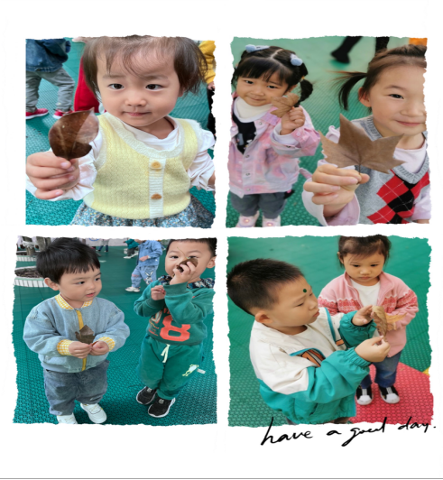 丰富多样的秋叶给予了孩子们探索、发现、表达的空间,孩子们看一看、踩一踩、捡一捡、玩一玩,和落叶来个亲密接触!秋天的落叶真美丽,通过捡拾落叶也让孩子们回归自然,激发了他们热爱大自然、热爱生活的美好情感!