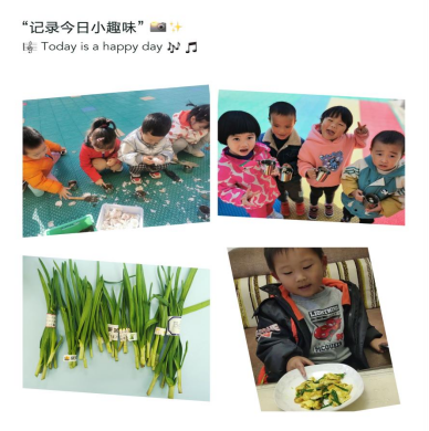 虽然孩子们填土的动作很稚嫩,但是他们其乐融融的在一起劳动却感到无比的快乐。丰收的日子到了,大蒜冒出了高高的苗,我们开始采摘咯!在老师的帮助下,小朋友们将自己的蒜叶剪下来并贴上自己的姓名贴,带回家和爸爸妈妈一起品尝自己劳动成果啦!