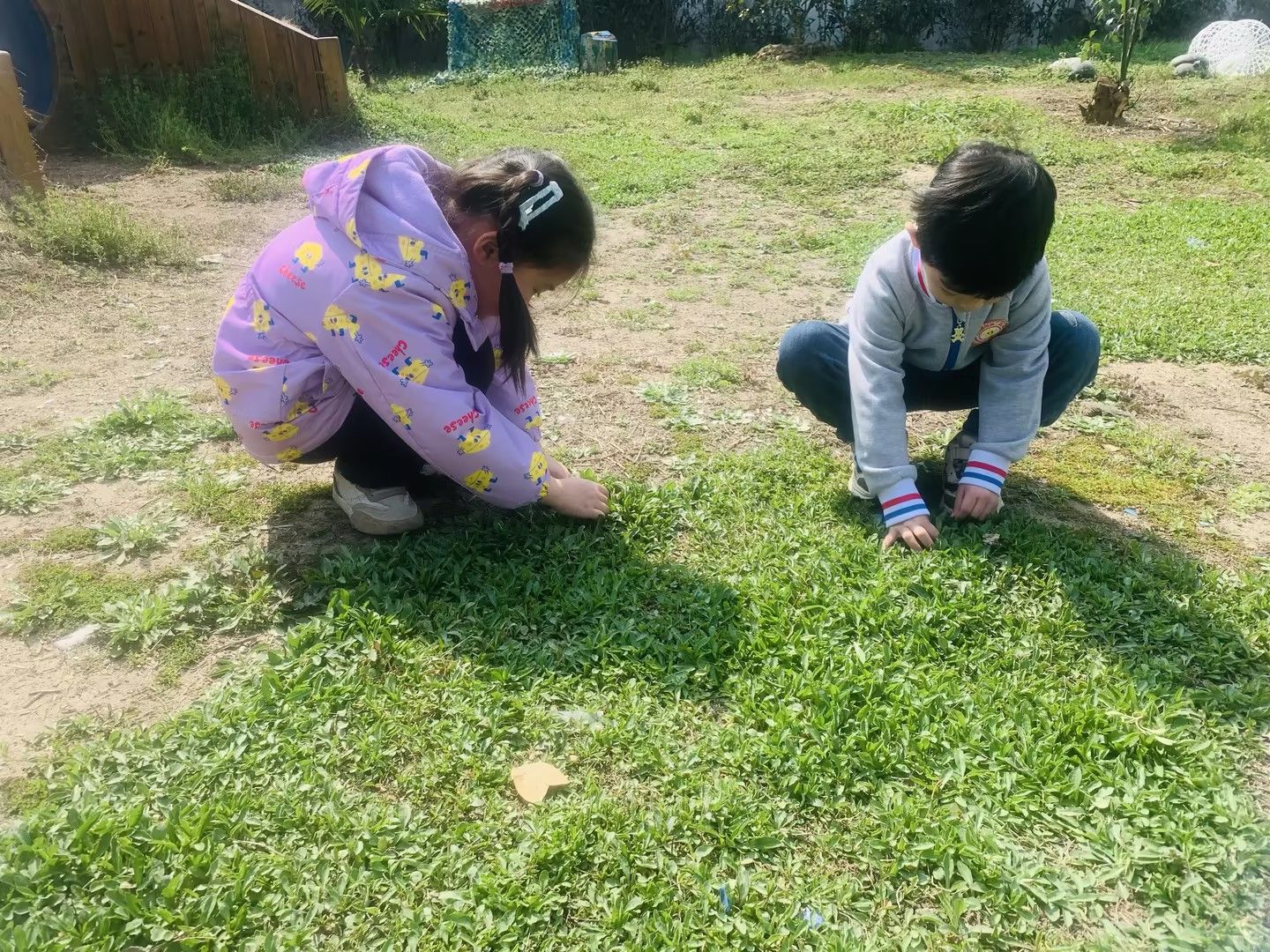 大自然是幼儿最好的老师,它不仅是远处的森林,更多的是幼儿身边的,一草一木、花朵树叶。 到了种植地要开垦的的时候,孩子们拿上工具来到了我们的种植地,光秃秃的地里有一片绿绿的“杂草”,可是那片绿绿的地方真的都是杂草吗?当然不是,摘一摘、闻一闻,小小的一股青香扑来,老师老师,这个绿绿的“杂草”好香啊,我们把它养在我们的自然角吧,我想看它开花,它的花肯定更香吧。