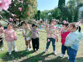 春暖花开,孩子们脱去厚厚的外套,在校园里尽情地玩耍、嬉戏。小朋友们感受到了春天的美丽变化,找到了“春回大地”的脚步。