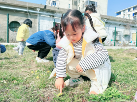 紧接着,孩子们跟着老师来到校园里,沐浴着春日暖暖的阳光,闻着花儿阵阵的芳香,探索鲜嫩青菜的模样。孩子们陶醉在春日的美景之中,享受着探索大自然的快乐。在老师的引导下观察初春的景色,并大胆表达自己的发现。用合适的词汇表达自己的感嫩绿、一大片、刺刺的,懂得要爱护草地。通过找春天的活动,孩子们开阔了眼界,增长了知识,萌发了对春天的热爱,享受到大自然带给我们的乐趣,让幼儿在寻找中探索,在探索中学习,在学习中成长。