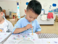 孩子们从探究泡泡的形成原因和材料,到掌握水和洗洁精的比例,学习使用扭扭棒、吸管等制作吹泡泡的工具,最后尝试用吹画的方式创作泡泡的大门!