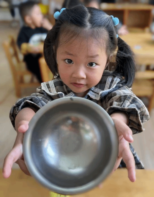 什么是光盘行动呢?“就是吃完饭,碗里一粒饭都没有。”“光盘就是吃干净饭的碗光亮亮的。”“光盘就是要吃多少、盛多少,不能浪费。” 幼儿们叽叽喳喳地讨论起有关“光盘行动”的话题。围绕这一话题,老师们一起观看了光盘行动的相关视频,学习了爱惜粮食的相关内容,知道了要以“吃光自己碗中的饭菜”的实际行动践行节约精神,一颗颗 “珍惜粮食”的种子在幼儿们心中生根发芽。