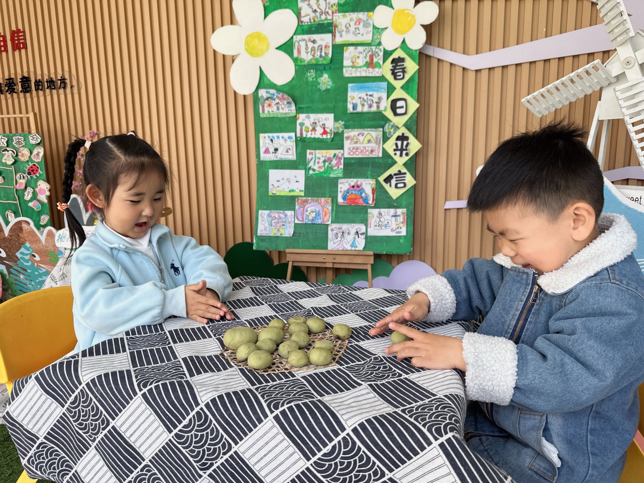 经过一番努力,一个个圆润可爱、散发着艾草清香的青团摆满了盘子。孩子们看着自己的劳动成果,兴奋地欢呼起来。随后,青团被送进厨房蒸煮。等待的过程中,孩子们围坐在一起,分享着自己制作青团的感受,教室里充满了欢声笑语。