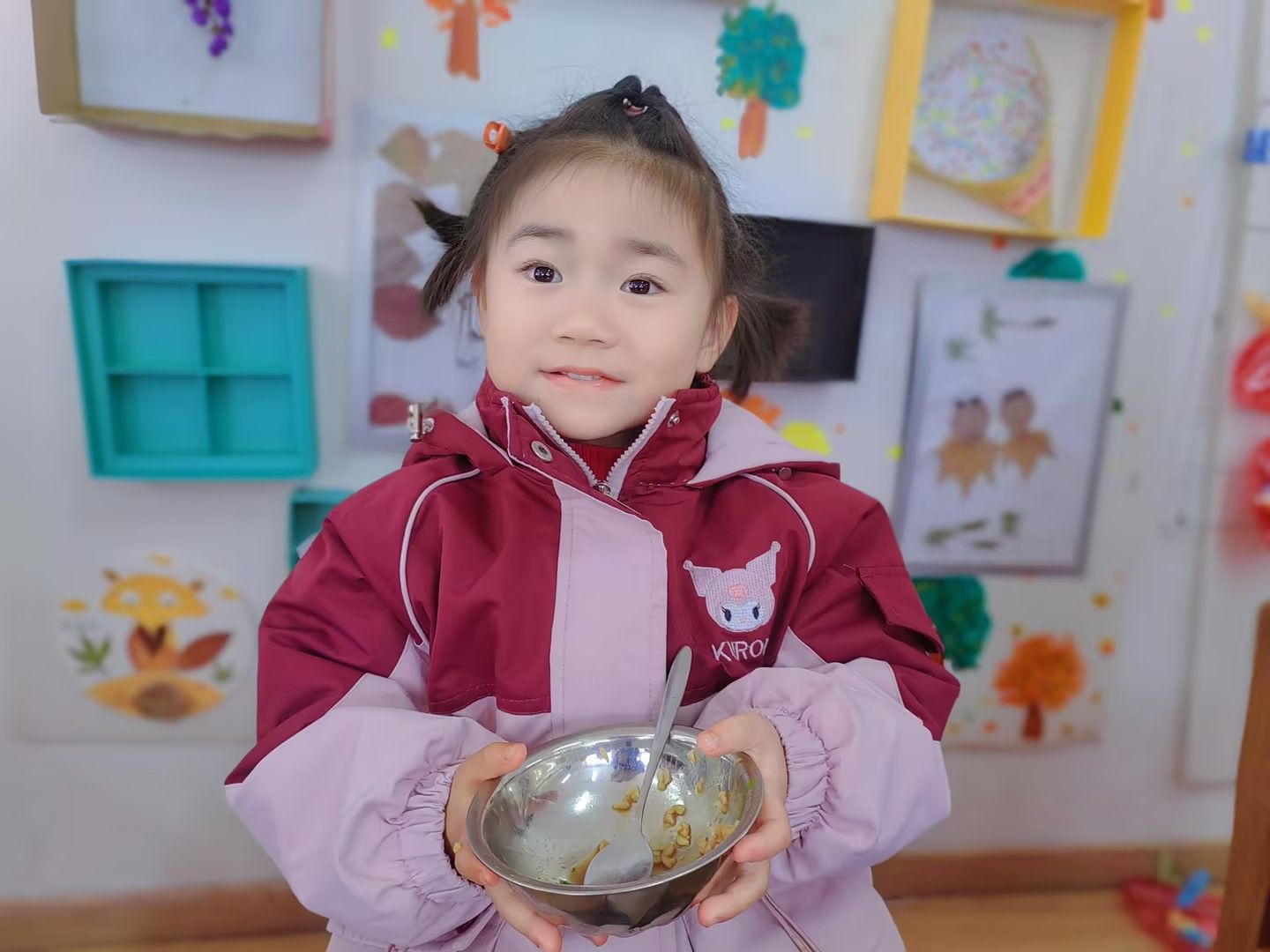 什么是光盘行动呢?“就是吃完饭,碗里一粒饭都没有。”“光盘就是吃干净饭的碗光亮亮的。”“光盘就是要吃多少,盛多少,不能浪费。” 幼儿们叽叽喳喳地讨论起有关“光盘行动”的话题。围绕这一话题,老师和幼儿们一起观看了光盘行动的相关视频,学习了爱惜粮食的相关内容,知道了要以“吃光自己碗中的饭菜”的实际行动践行节约精神,一颗颗 “珍惜粮食”的种子在幼儿们心中生根发芽。午餐时,宝贝们认真吃光自己碗里的饭菜,来到光盘打卡墙,骄傲地贴上“光盘小达人”的照片。