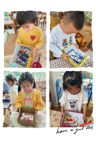 弹珠,一颗五彩斑斓的玻璃球,是一项民间儿童游戏。细微的滚动、清脆的碰撞,小小的身躯承载着童年的快乐。今天小三班有一个有意思的冒险,一张纸,一个盒子,几种颜料和若干颗弹珠,将指引着孩子们进入奇妙的艺术世界。来,让我们一起步入这方天地。